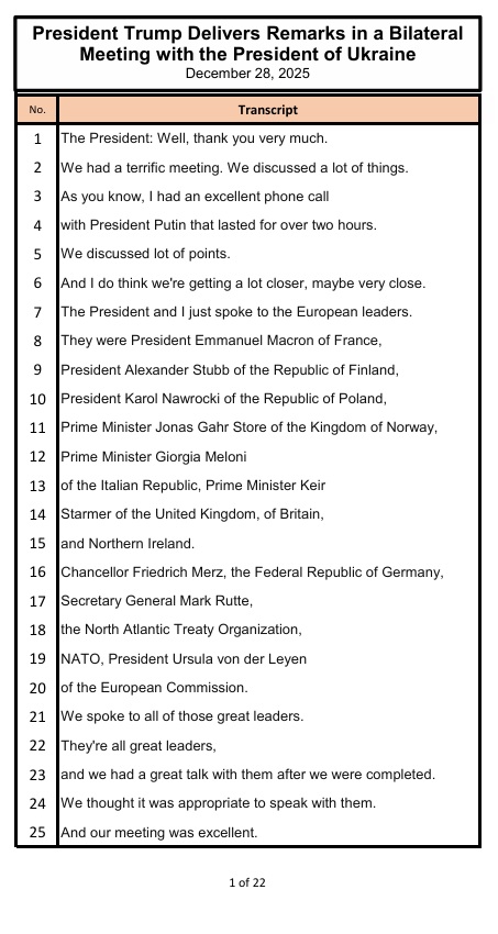 • The United States and Russia agreed to develop measures for implementing President Trump’s and President Putin’s agreement to ban strikes against energy facilities of Russia and Ukraine.