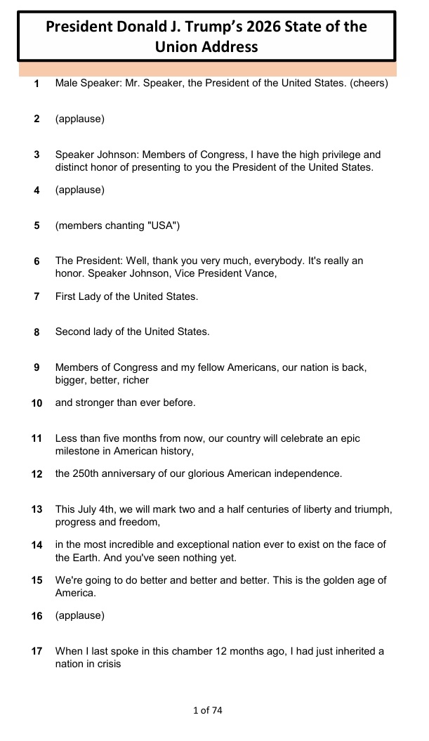 President Donald J. Trump’s 2026 State of the Union Address